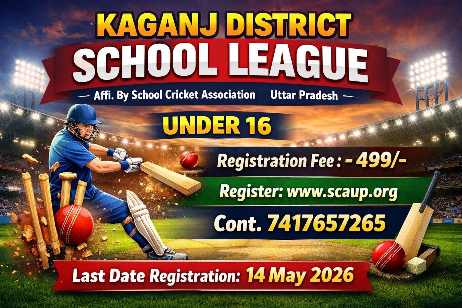 Registered under the Societies Registration Act, 1860, the School Cricket Association Uttar Pradesh (SCAUP) is dedicated to nurturing young cricket talent across the state. We provide a structured platform for school students to learn, play, and excel in cricket. Through regular coaching camps, inter-school tournaments, and talent development programs, we aim to promote the spirit of sportsmanship, teamwork, and discipline among budding cricketers. Our mission is to discover promising players at the grassroots level and help them build a strong foundation for a future in professional cricket.